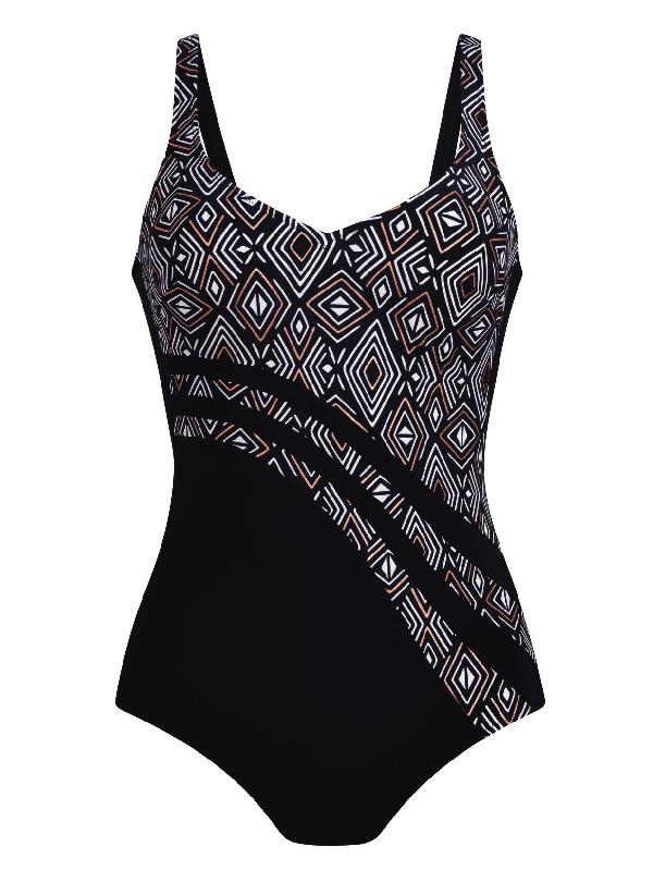 Bañador sin aros copa B forrado modelo LUELLA negro-oro