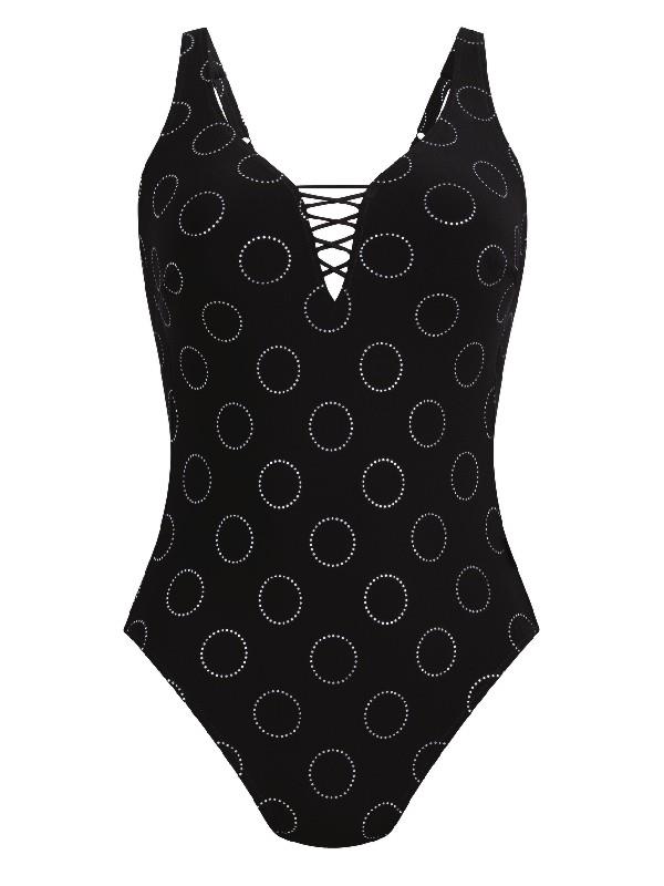 Bañador sin aros copa F estampado modelo NOVA negro y plata