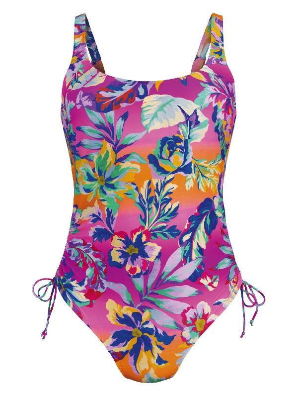Bañador sin aros copa F modelo JESSY estampado flores rosa